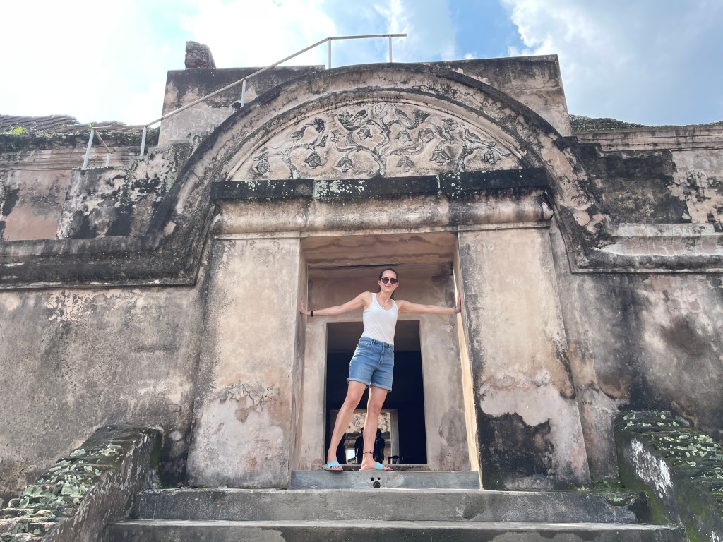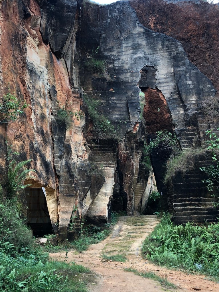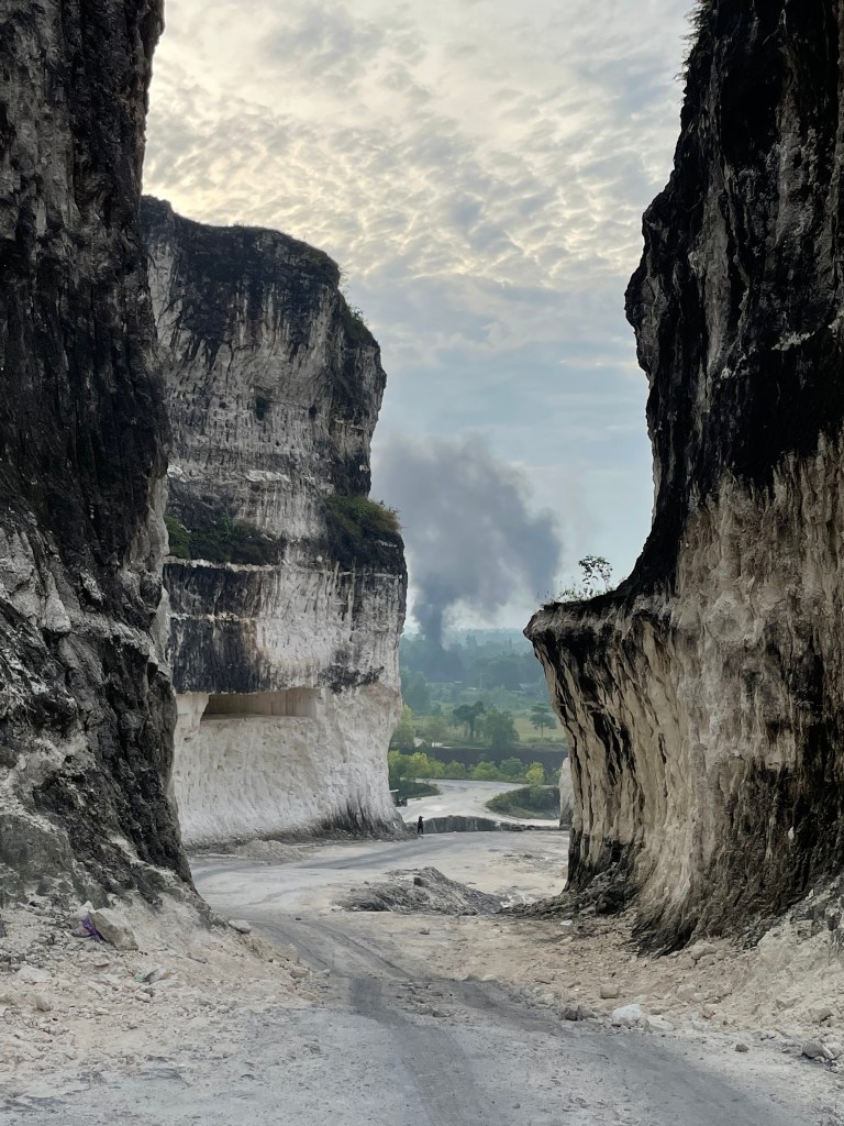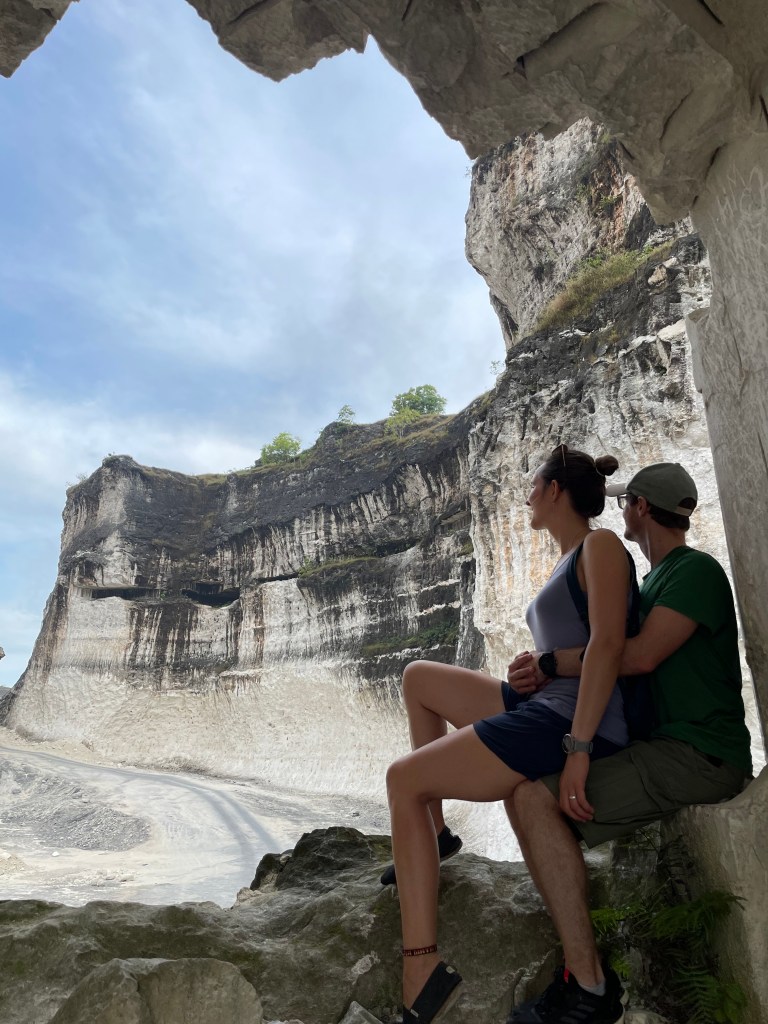 Da wir die Umgebung der Stadt dann aber doch noch erkunden wollten, mieteten wir uns nach dem Scooter-Fiasko einen Fahrer für 8 Stunden. Wir fuhren Richtung Norden und besuchten zwei Kalksteinbrüche (Fotos siehe unten). Die Anzahl der leerstehenden und halb verfallenen Verkaufsstände ließ vermuten, dass beide Orte vor der Pandemie beliebte Touristen-Attraktionen gewesen waren. Vor allem der zweite Ort hatte sich im Vergleich zu den Bildern der Google-Suche aber deutlich verändert. Das ehemals blaue Wasser war aktuell grün und veralgt, die kleinen mit Blumen geschmückten Bambus-Boote lagen traurig im Wasser oder waren ans Ufer gezogen worden. Dem Anschein nach ließen die großen Besucherströme auch weiterhin auf sich warten, zumindest waren außer uns kaum andere Leute da. Es war daher nicht verwunderlich, dass sich dort gleich zwei junge Männer auf uns stürzten und als Guides anboten. Die ganze Szene kam uns so traurig und sie so hoffnungsvoll vor, dass wir nicht einmal versuchten, sie abzuwimmeln, sondern uns unserem Schicksal ergaben und über das Gelände führen ließen. Zum Steinbruch selber erzählten die Experten nur wenig, dafür bekamen wir von ihnen eine sehr ausführliche Einführung darüber, wo und wie die besten Fotos für Instagram aufgenommen werden konnten. Alle paar Meter wurden wir als Paar oder Einzelpersonen arrangiert, unsere Posen korrigiert und alles mit einem fröhlichen Geplauder begleitet, dann wurden mit allen vorhandenen Handys mehrere Bilder gemacht (wir sind uns fast sicher, dass wir es in diesem Moment auch gleich mehrfach auf tiktok geschafft haben). Die Aufnahme des „perfekten Fotos“ war für den üblichen Besucher offensichtlich das Hauptziel. Wir gaben unser Bestes, die in uns gesetzten Erwartungen nicht zu enttäuschen und warfen uns in Pose. Etwa 100 Fotos später war die Tour vorbei und wir auf dem Weg zurück in die Stadt. Inwieweit die Ergebnisse wirklich „instagramable“ sind, liegt im Auge des Betrachters. Viel wichtiger für uns war, dass wir durch die beiden Guides eine essbare Frucht kennenlernten (Salak), die wir im weiteren Verlauf der Reise dann das ein oder andere Mal am Straßenrand erwerben konnten.