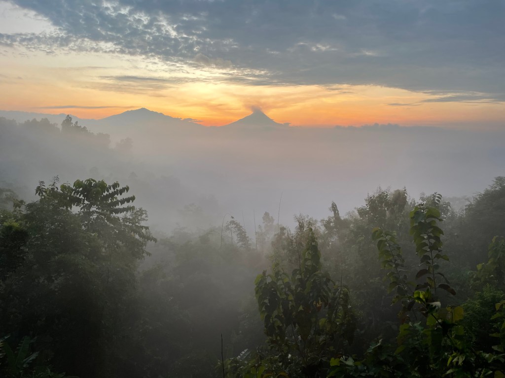 Um auf dem Abstieg nicht Gefahr zu laufen, auf dem schlammigen Boden auszurutschen, bedienten wir uns der Lauf-Bergab Methode und joggten, wodurch wir nach etwa 40 Minuten wieder am Parkplatz angekommen waren. Dort genossen wir einen heißen Tee, denn durch den Regen, die Höhe und frühe Uhrzeit war es auch hier empfindlich kalt gewesen. Über dem heiß dampfenden Getränk machten wir uns Gedanken über die letzten zwei Tage. Das Erlebnis, die blauen Flammen zu betrachten und dabei den gefährlichen Dämpfen ausgesetzt zu sein, war schon etwas Besonderes und Aufregendes. Auch waren es schöne Naturschauspiele gewesen, doch konnten wir insgesamt den Hype nicht bestätigen, vor allem das Theater um den Sonnenaufgang. Auffällig war zudem, dass sich die wenigsten Besucher wirklich Zeit zur Betrachtung nahmen oder die Natur erkunden wollten. Viele beschäftigten sich viel mit ihrem Handy, womit etwa die aufgenommenen Bilder und Videos gleich verschickt und gepostet, aber auch Telefonate geführt oder einfach nur Spiele gespielt wurden. Wir gewannten den Eindruck, dass für viele derartige Aktivitäten häufig nur Punkte waren, die von einer imaginären Liste abgehackt werden mussten, wie die 10 beliebtesten Tripadvisor-Aktivitäten oder 15 besten ToDo-Empfehlungen auf Instagram. Wir beschlossen, dass für uns zwei Sonnenaufgänge reichen mussten und machten von da an um „Sunrise“-Touren, die zuhauf in den verschiedensten Ausführungen angeboten wurden, einen großen Bogen.
