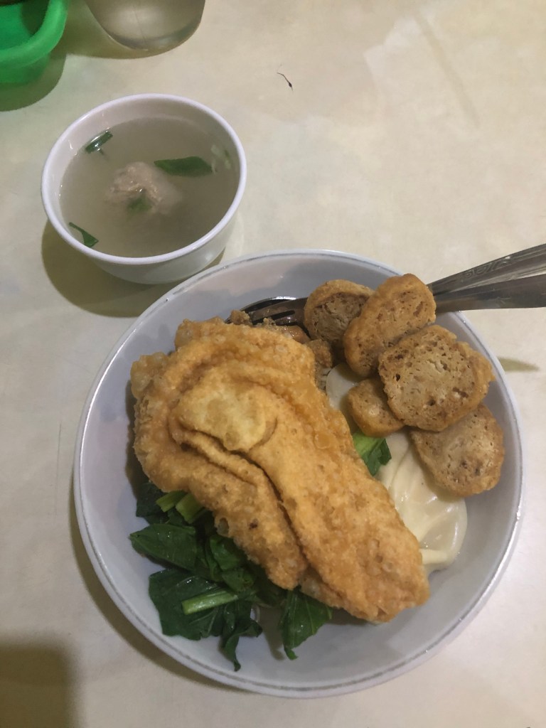 Nach drei Tagen in Yogyakarta ging es weiter mit dem Zug nach Surabaya, eine Großstadt an der Nordküste von Java. Antonia hatte eine Internetseite mit vielen Tipps von Einheimischen für die Stadt und ihre Umgebung gefunden, die wir mit dem Roller erkunden wollten. Problem war nur, dass wir vor Ort leider keinen Roller bekamen. Offensichtlich war Surabaya selber kein touristischer Ort, die Anzahl der Rollervermietungen begrenzt und die angefragten alle ausverkauft. Nach einem Nachmittag schlechter Laune beschlossen wir, das Beste daraus zu machen und die Stadt dann eben zu Fuß zu erkunden. Zu Fuß hieß 45 Minuten bis zur Stadtmitte durch Hitze und Schwüle, entlang von vielbefahrenen Straßen mit knatternden Scootern und Motorrändern ohne Gehweg, aber gut. Seitens der Einheimischen wurden wir mit großen Augen angeschaut, aber doch freundlich mit „Hello“ begrüßt, Kinder liefen uns aufgeregt hinterher und lachten (uns aus?). Offensichtlich kamen hier nicht oft westliche Touristen vorbei, erst recht nicht zu Fuß. Ein Kind zeigte mit dem Finger auf uns und rief halblaut „ayam puti“, was wir anhand unserer bisherigen Esskenntnisse und mit Hilfe des Google-Translator sofort übersetzen konnten („weißes Hühnchen“). Wir mussten lachen und der Begriff wurde fester Bestandteil unseres Indonesischrepertoires.